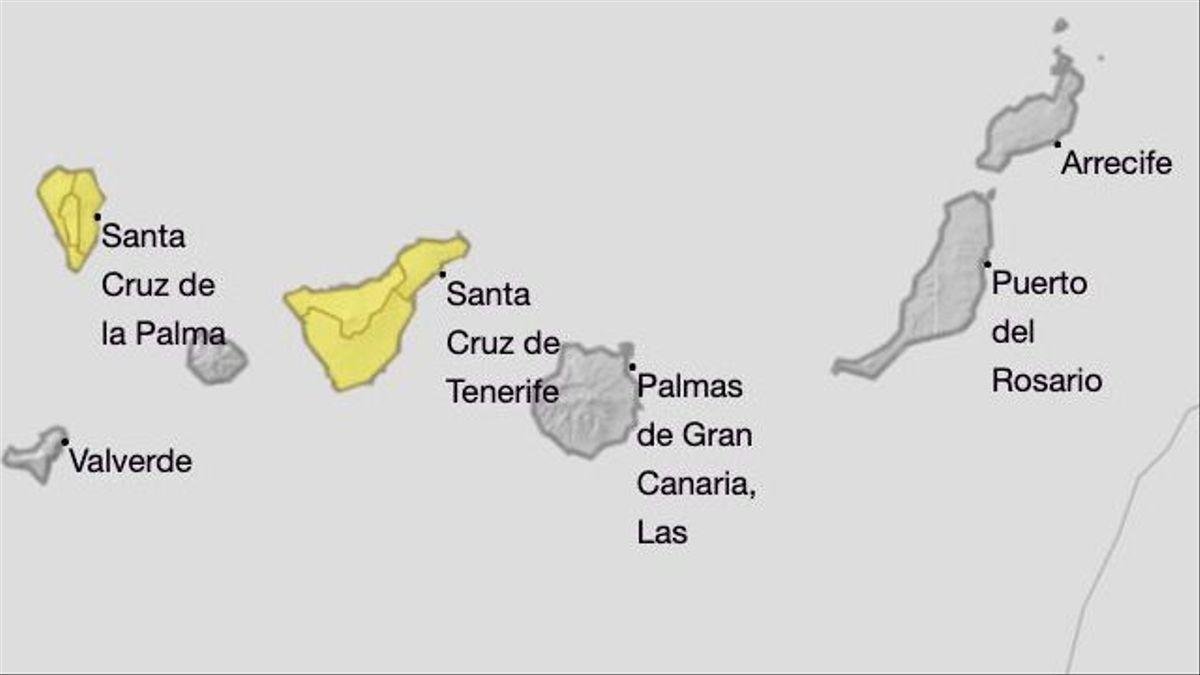 La Agencia Estatal de Meteorología añadió que los chubascos, localmente fuertes, serán más probables en zonas del interior de las vertientes este y sur. El aviso también se activó en Tenerife.