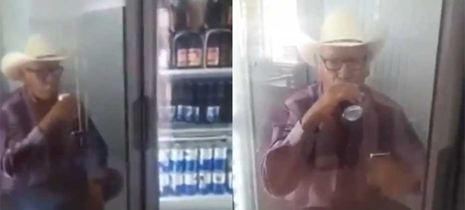 El mencionado video muestra cómo en un frigorífico se encuentra un hombre de sombrero dando tragos a su lata de cerveza y saludando a la cámara que lo enfoca.