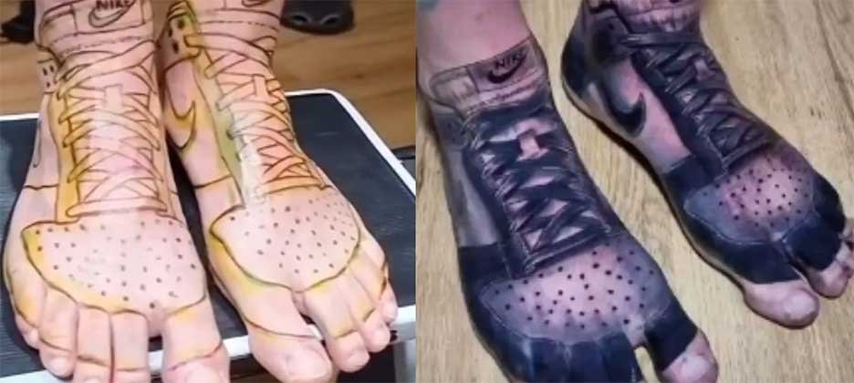 Un hombre tomó la decisión de tatuarse permanentemente unos tenis Nike por cansarse de pagar zapatos; el video se viralizó.
