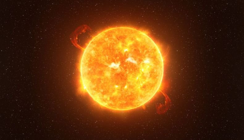 La actividad del Sol provoca fenómenos meteorológicos espaciales, como las tormentas solares, las erupciones solares y eyecciones de masa coronal.